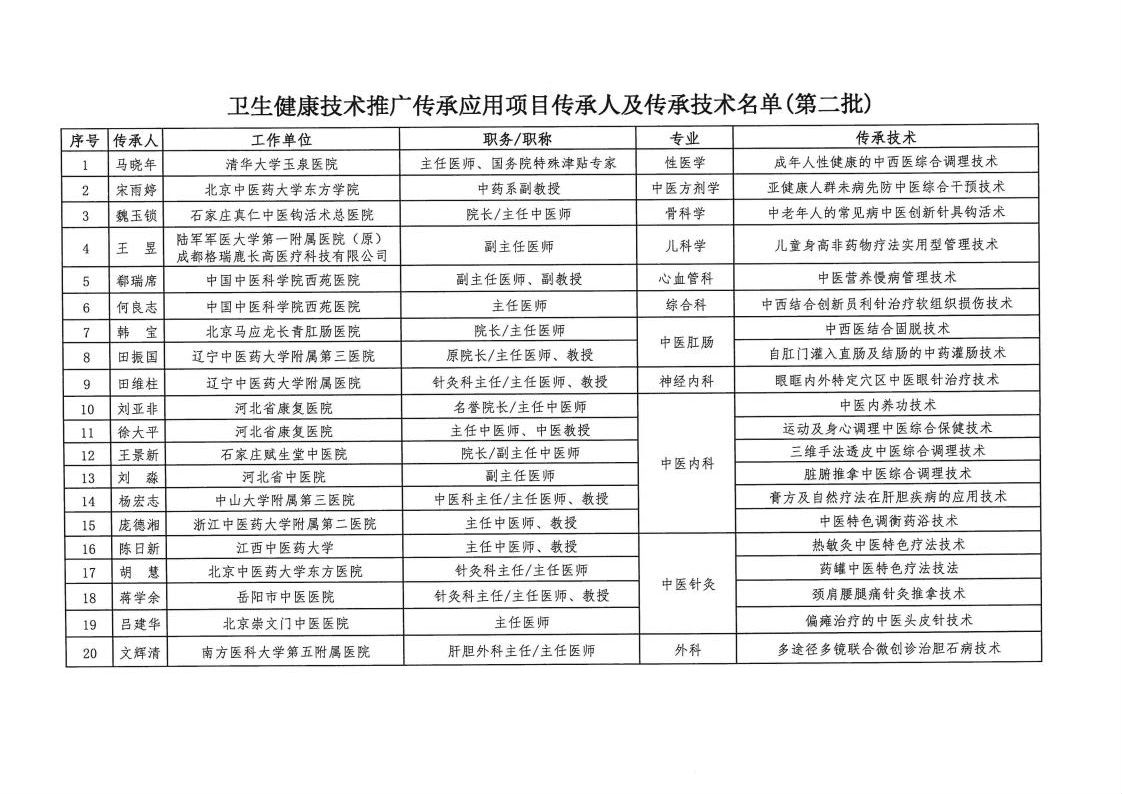 关于确认第二批卫生健康技术推广传承应用项目传承人及传承技术的通知