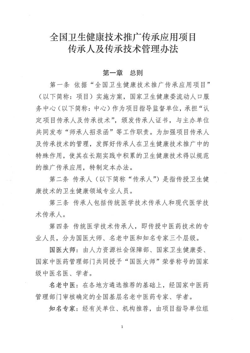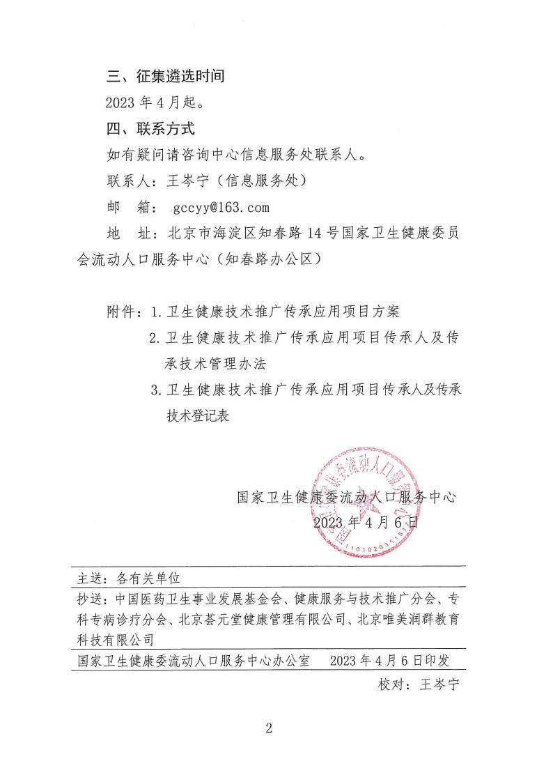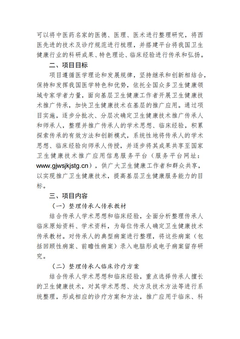 关于征集遴选卫生健康技术推广传承应用项目传承人及传承技术的函