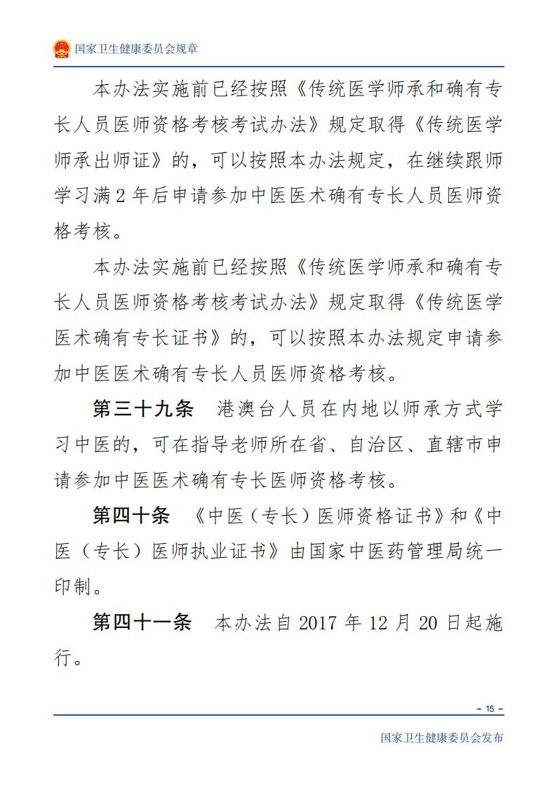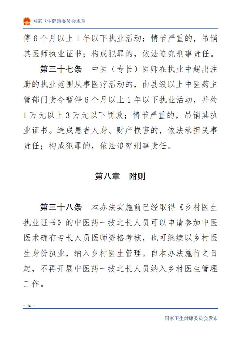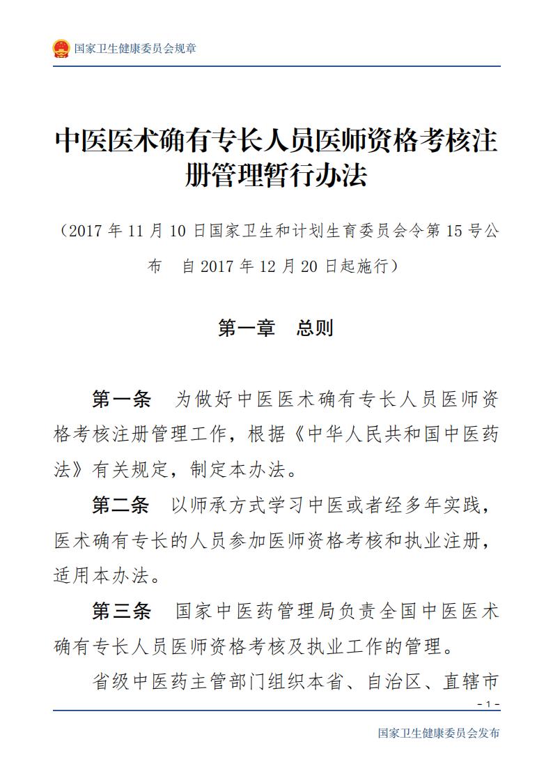 中医医术确有专长人员医师资格考核注 册管理暂行办法